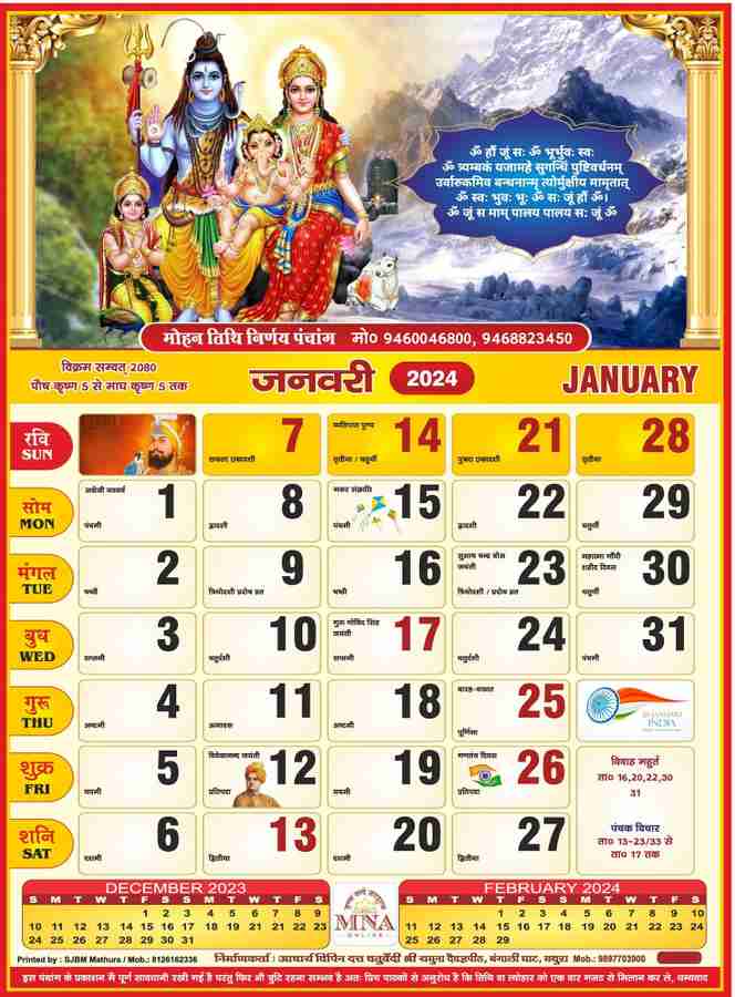Kal Darshak Hindu Festivals Sikh Islamic 2024 Calendar Jantari